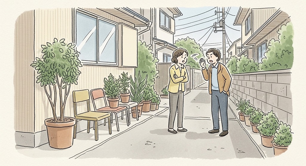 共有者の一人が「私の持分の前を勝手に通るな」と主張し、私道に車止めやポールを設置したり、プランターや自転車を置いたりして通行を妨げました。幅の狭い私道だったため、歩行者や車両が安全に通れなくなり、緊急車両の進入にも影響が出る事態となりました。さらに悪質なケースでは、通行していた男性を突き飛ばして傷害容疑で逮捕された事例もあります。